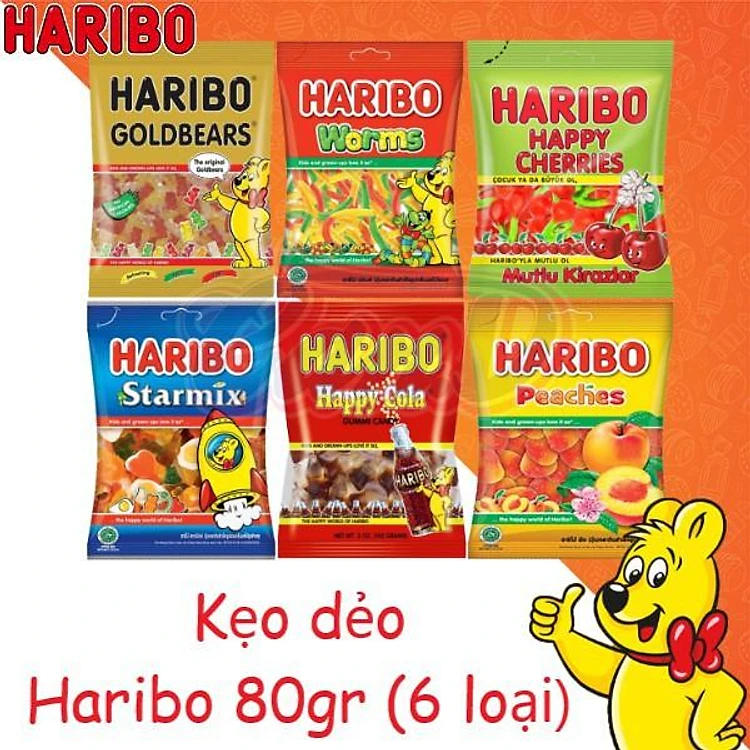 Haribo Kẹo Dẻo Cho Bé Vị Hoa Quả Nhập khẩu Đức (6 loại) 80gr