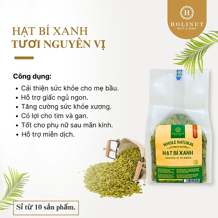 Hạt bí xanh tách vỏ Xuất xứ Ấn độ Thương Hiệu HOLINUT /đóng gói 500gr - 250gr