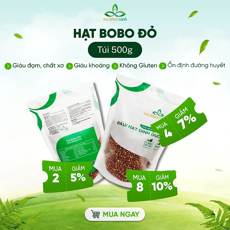Hạt Bobo (Cao lương) đỏ Sức Khỏe Xanh, Túi 500g nhập khẩu từ Ấn Độ