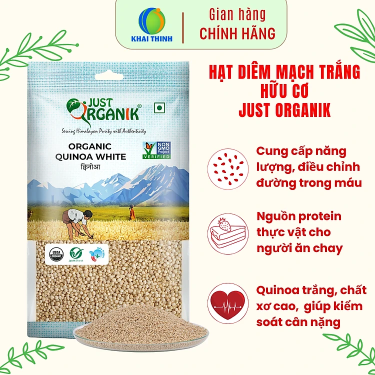 Hạt Diêm Mạch Quinoa Trắng Hữu Cơ Just Organik Quinoa White Nhập Khẩu Ấn Độ Dinh Dưỡng Cho Người Ăn Kiêng 500g