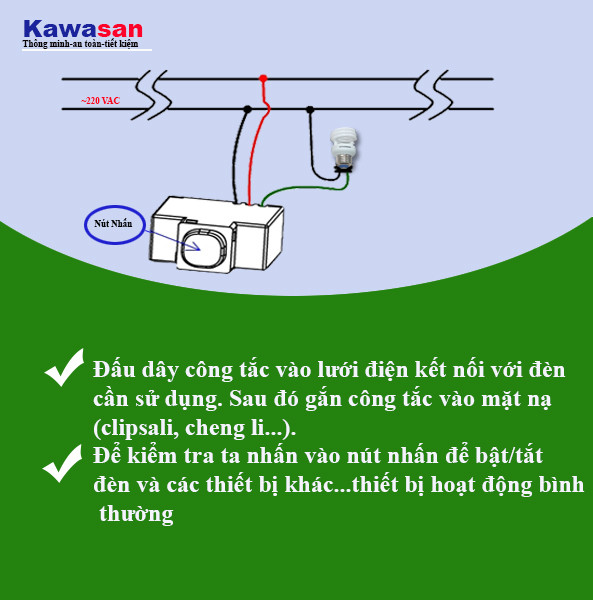 Đấu dây theo sơ đồ mạch điện có dán phía sau sản phẩm.