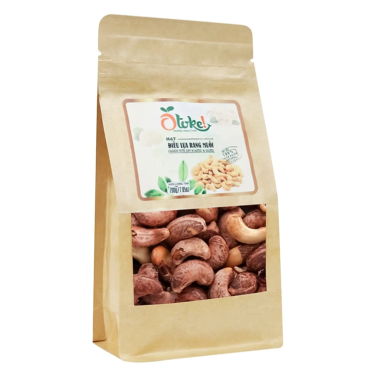 - Hạt Điều Lụa Rang Muối Otoke TOHD01 (200g) với 100g hạt điều lụa chứa khoảng 564 Kcal. Tiêu thụ 1/4 cốc hạt điều hàng ngày sẽ cung cấp cho bạn 37,4% chất béo không bão hòa đơn, giúp tim khỏe mạnh hơn, cùng với 38% lượng đồng và 22,3% magiê cần thiết hàng ngày.