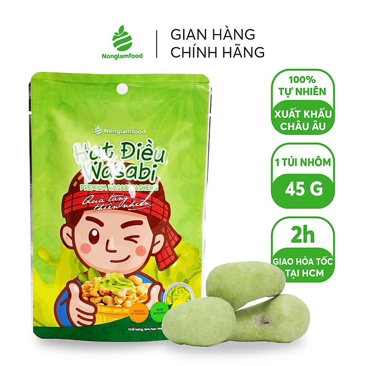 Hạt điều phủ vị phô mai, sầu riêng, tỏi ớt, wasabi túi 45g Nonglamfood | Đồ ăn vặt dinh dưỡng