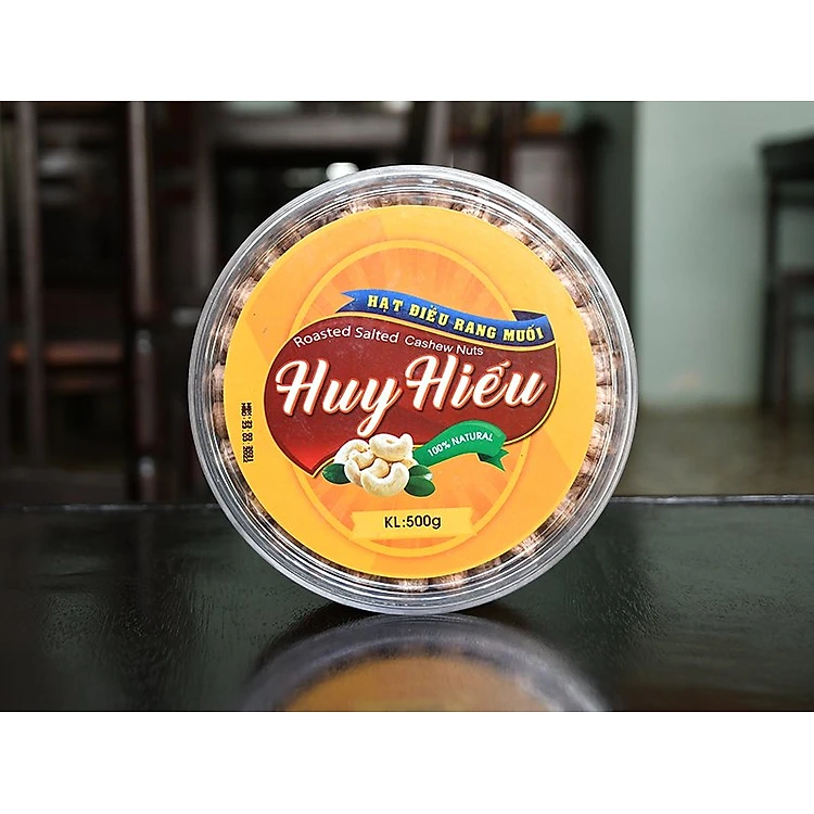 Hạt Điều Rang Muối Huy Hiếu 500gr hộp tròn còn vỏ lụa