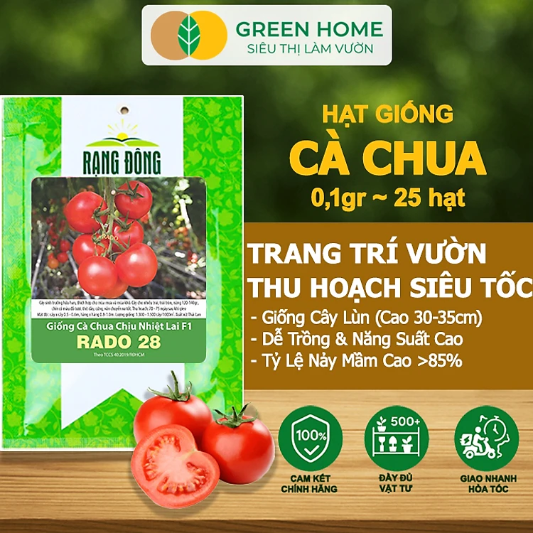 Hạt Giống Cà Chua Greenhome, Gói 0.1gr~25 hạt, Chịu Nhiệt, Trồng Chậu, Ra Nhiều Quả, Cây Sinh Trưởng Nhanh T15