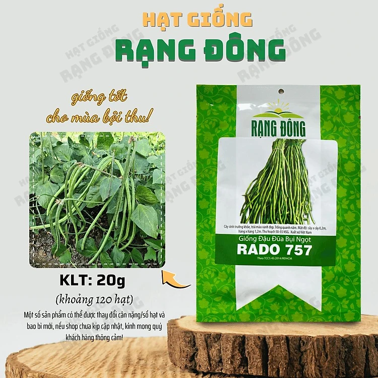 Hạt giống Đậu Đũa Ngọt Lùn Rado 757 (20g~120 hạt) trồng quanh năm, nảy mầm tốt, sinh trưởng khỏe - Hạt giống Rạng Đông