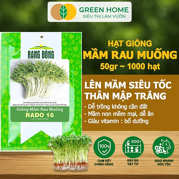Hạt Giống Mầm Rau Muống Greenhome, Gói 50g~1000 hạt, Dễ Trồng Quanh Năm, Nảy Mầm Cao, Thu Hoạch Nhanh, Năng Suất Cao R14