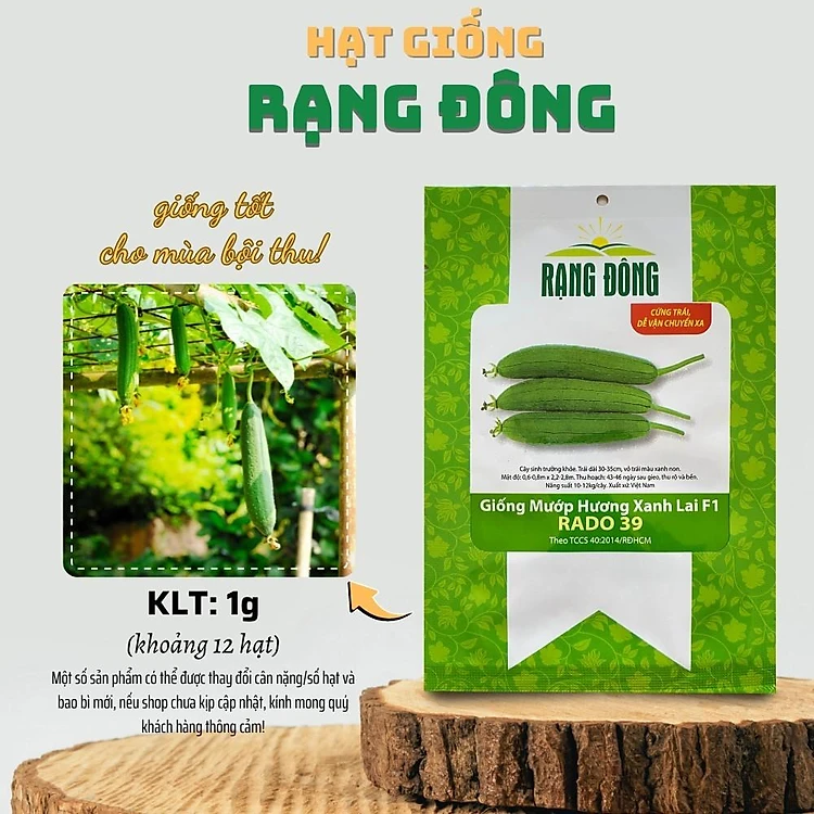 Hạt giống Mướp Hương Xanh Lai F1 Rado 39 (1g~12 hạt) sinh trưởng khỏe, năng suất cao, dễ chăm sóc - Hạt giống Rạng Đông