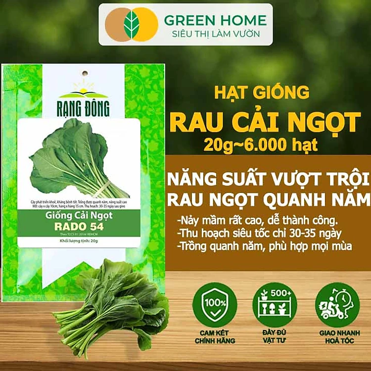 Hạt Giống Rau Cải Ngọt Greenhome, Gói 20g~6000 hạt, Dễ Trồng Quanh Năm, Nảy Mầm Cao, Thu Hoạch Nhanh, Năng Suất Cao R03