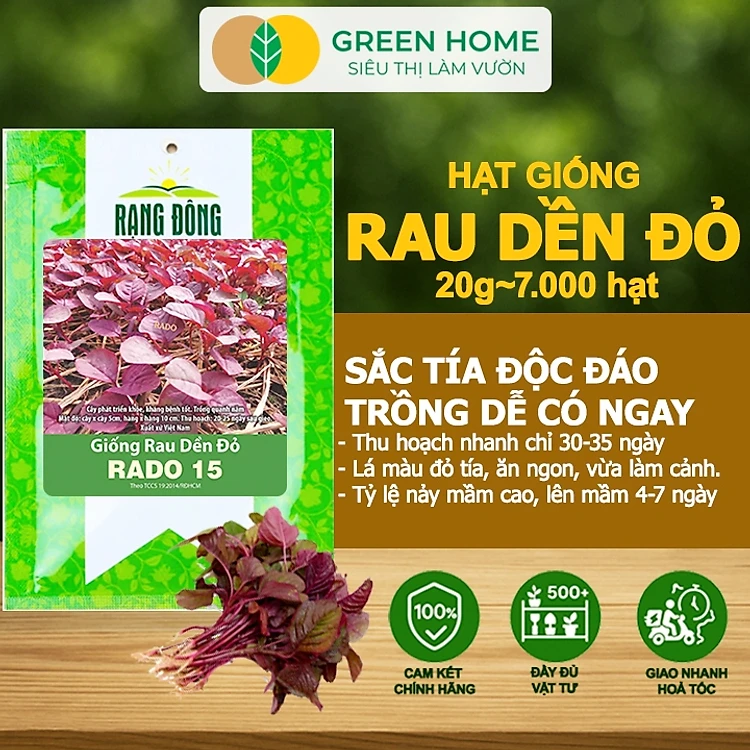 Hạt Giống Rau Dền Đỏ GreenHome, Gói 20gr~7000 hạt, Dễ Trồng Quanh Năm, Thu Hoạch Nhanh R24