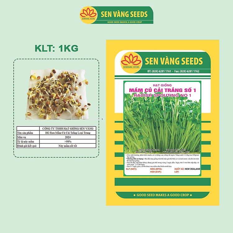 Hạt Giống Rau Mầm Củ Cải Trắng (Size Trung) - Nhập khẩu New Zealand, nảy mầm >95%, siêu năng suất - HẠT GIỐNG SEN VÀNG