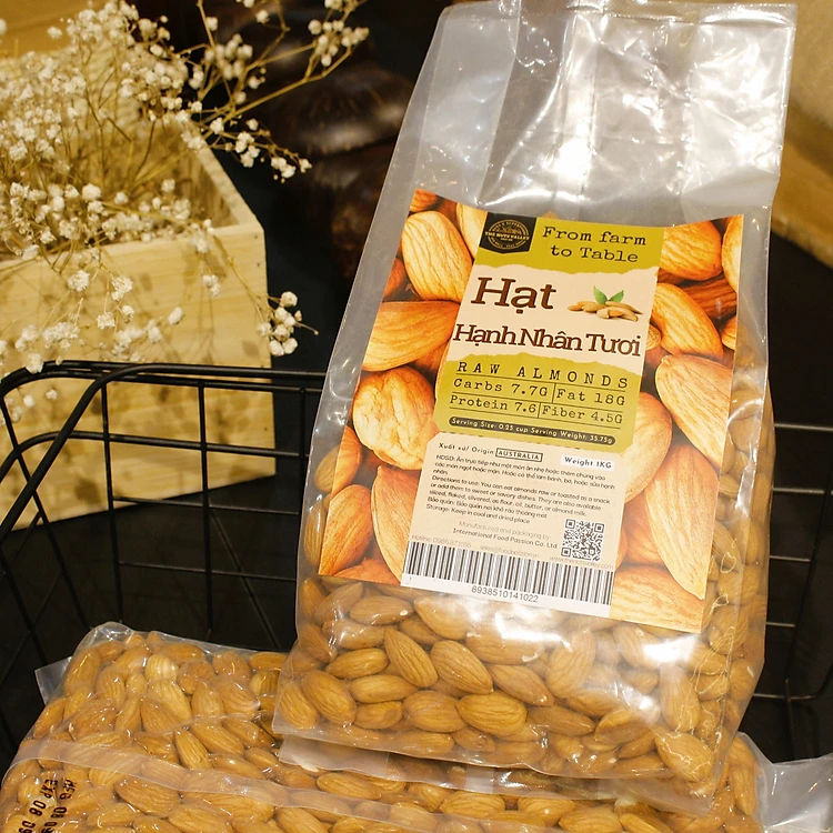 Hạt hạnh nhân có thể ăn tươi hoặc trải qua quá trình rang giúp hạt trở nên giòn hơn, hạnh nhân bột và lát được dùng để chế biến các món ăn.