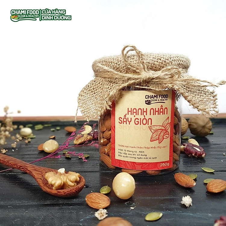 Hạt hạnh nhân sấy ChamiFood 500G NHẬP KHẨU MỸ CHÍNH NGẠCH LOẠI 1 giúp Giảm cân Đẹp dáng, giàu RIBOFLAVIN, hợp Eat Clean.