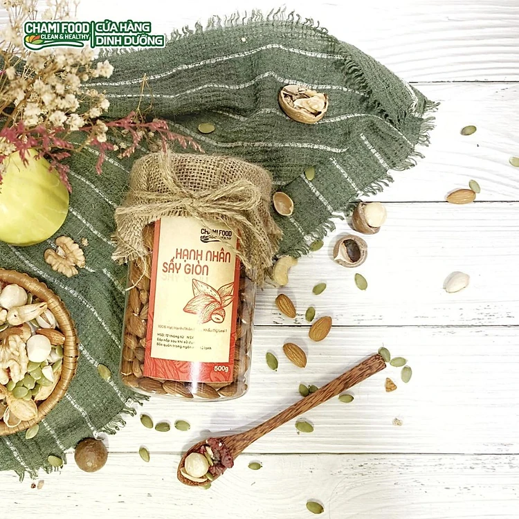 Hạt hạnh nhân sấy ChamiFood 500G NHẬP KHẨU MỸ CHÍNH NGẠCH LOẠI 1 giúp Giảm cân Đẹp dáng, giàu RIBOFLAVIN, hợp Eat Clean.