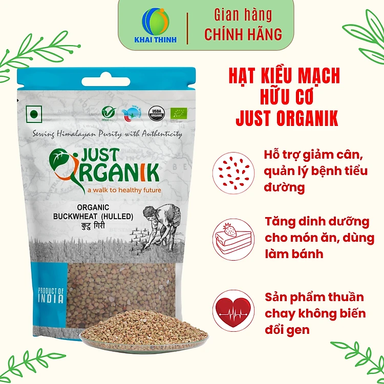 Hạt Kiều Mạch Hữu Cơ Just Organik Ấn Độ Dành Cho Người Ăn Kiêng Tốt Cho Mẹ Bầu Nấu Cháo Cho Bé 500g