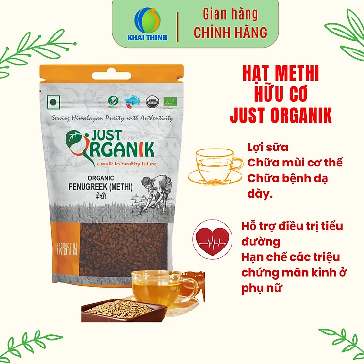 Hạt MeThi Hữu Cơ Just Organik Ấn Độ Làm Bánh Pha Uống Hỗ Trợ Ổn Định Đường Huyết - 100g