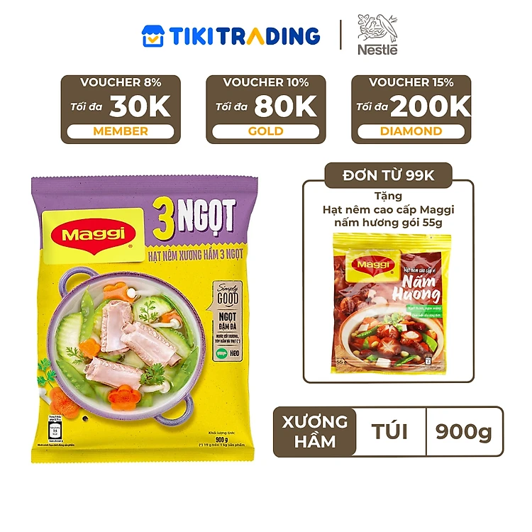 Hạt nêm MAGGI Xương Hầm 3 ngọt Heo gói 900g