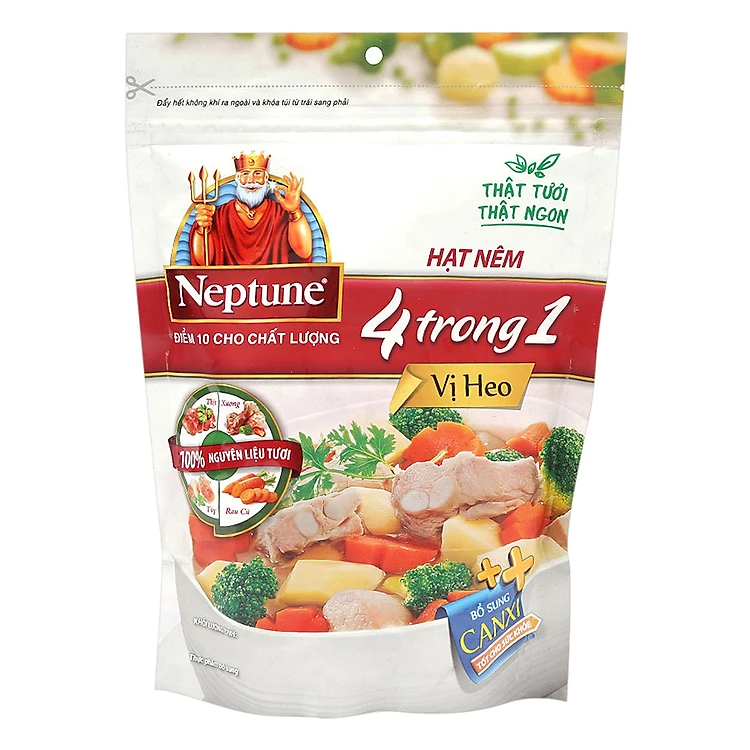 • Hạt Nêm Neptune 4 Trong 1 Vị Heo (170g) với 100% nguyên liệu tươi ngon từ thịt thăn, xương ống và cà rốt là bí quyết làm nên vị ngon ngọt tự nhiên của hạt nêm Neptune.