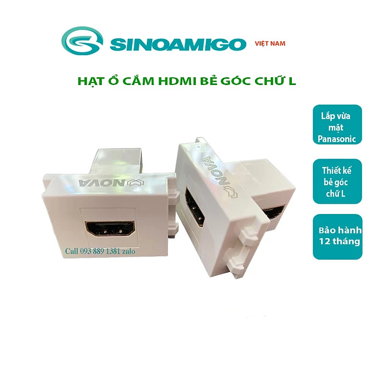 Hạt ổ cắm HDMI âm tường (hạt thẳng, hạt bẻ góc chữ L, hạt dây dài 20cm). Dùng lắp mặt âm tường, ổ cắm âm sàn