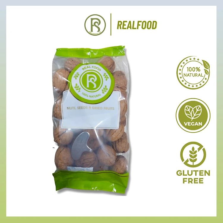 500g Hạt óc chó vàng nguyên vỏ Real Food (in-shell walnuts)