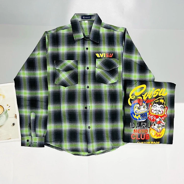 ÁO SƠ MI NAM CARO TAY DÀI LOGO THÊU EVISU MOTO CLUB HOTTREND Vải Nỉ Mềm Cao Cấp Siêu Mềm Phong Cách MỚI Thời Trang Hot Trend Mới