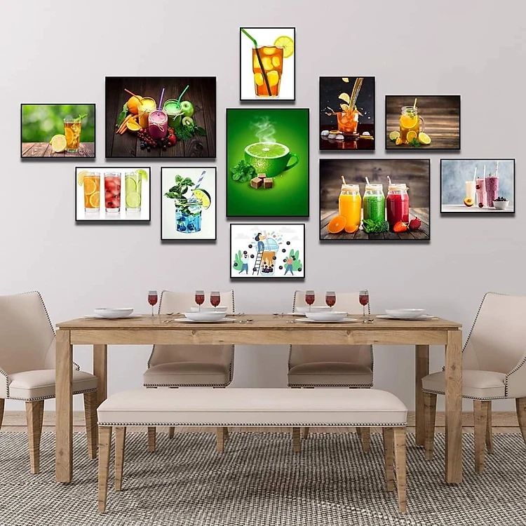 (HCM) Bộ 11 khung ảnh treo tường nước ép, sinh tố trang trí quán cà phê kèm đinh treo