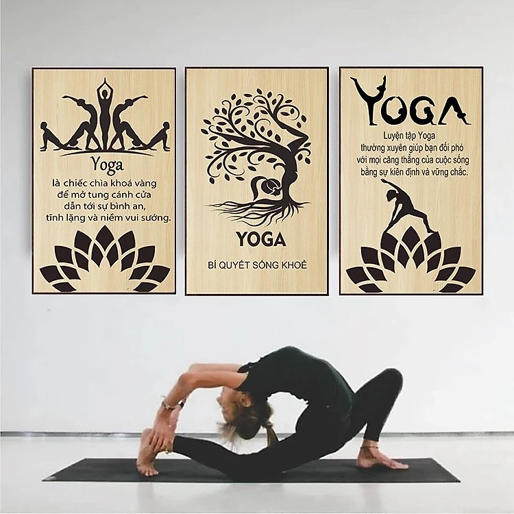 (HCM)Bộ 3 tranh treo tường trang trí decor lớp học yoga kèm đinh 3 chân