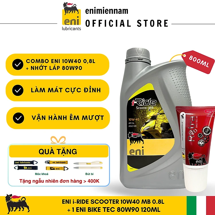 (HCM) Combo Eni Scooter 10W40 0.8L + Nhớt Láp 80W90 120ML