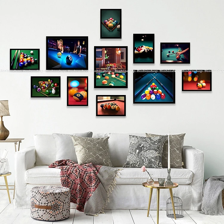 (HCM) Khung ảnh treo tường trang trí decor tiệm bida, mặt khung mica bóng kèm đinh treo