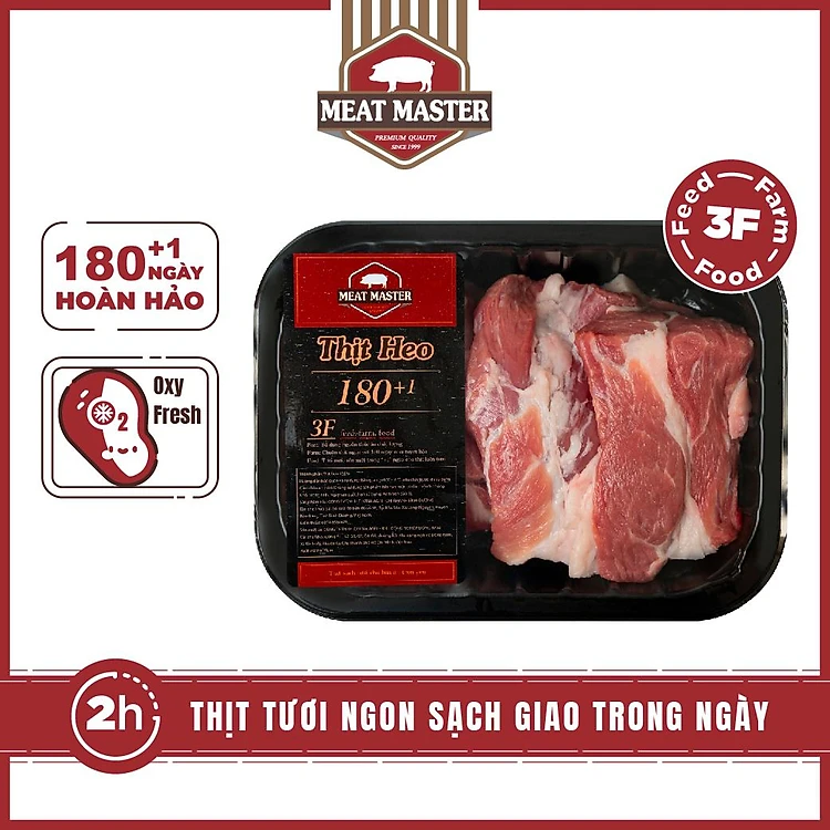 - Thịt heo đạt chuẩn 180 +1 ngày: 180 ngày chăn nuôi để thịt heo đạt chất lượng cao nhất, +1 ngày đóng gói, vận chuyển đến điểm phân phối