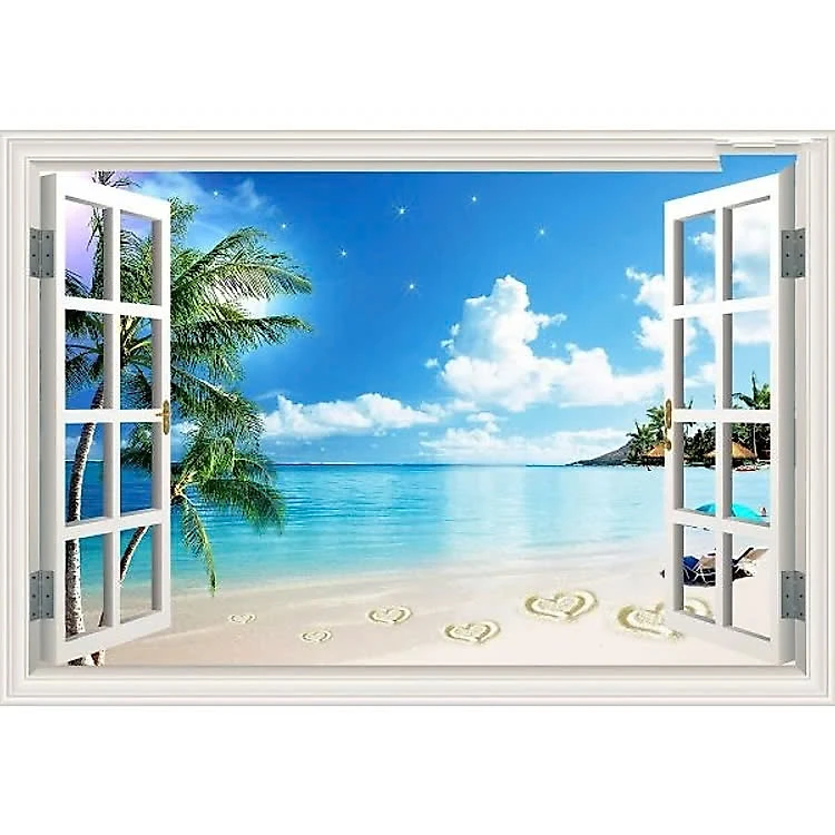 (HCM)Tranh dán tường 3d cửa sổ biển trang trí phòng khách, phòng ngủ, khách sạn tích hợp sẵn keo