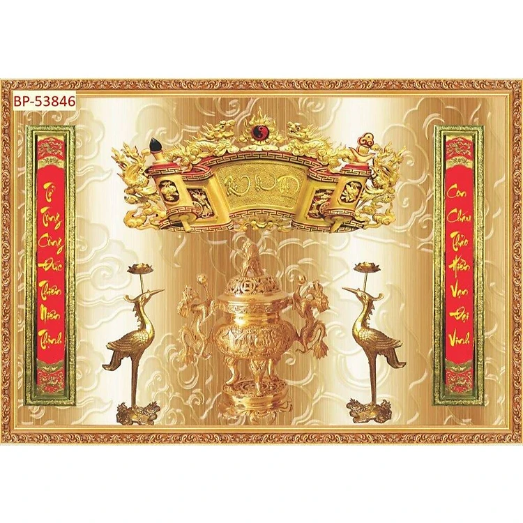 (HCM) Tranh dán tường 3d dán phòng thờ Phúc lộc thọ có sẵn keo(có in theo yêu cầu)