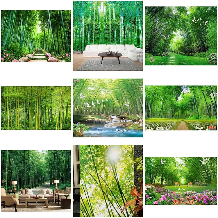 (HCM) Tranh dán tường 3d trúc xanh có sẵn keo phù hợp trang trí cho mọi không gian sống( có in theo kích thước yêu cầu)