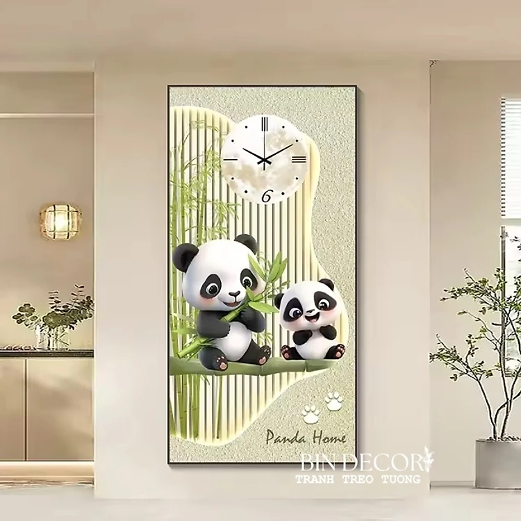 (HCM)Tranh đồng hồ tráng gương gấu trúc 8 dễ thương trang trí phòng bé, trang trí quán kèm đinh treo