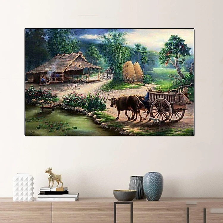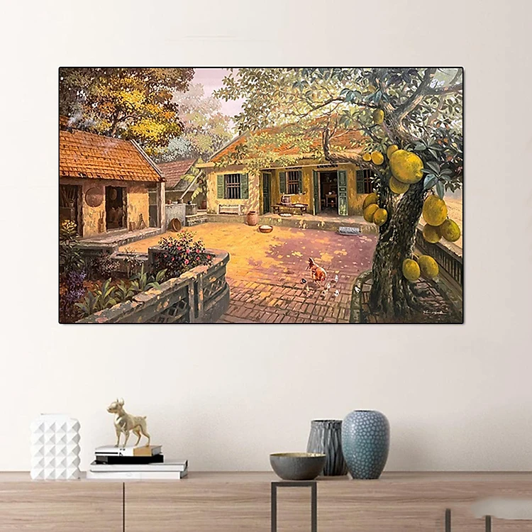 (HCM Tranh treo tường tráng gương cảnh làng quên Việt Nam yên bình kèm đinh treo