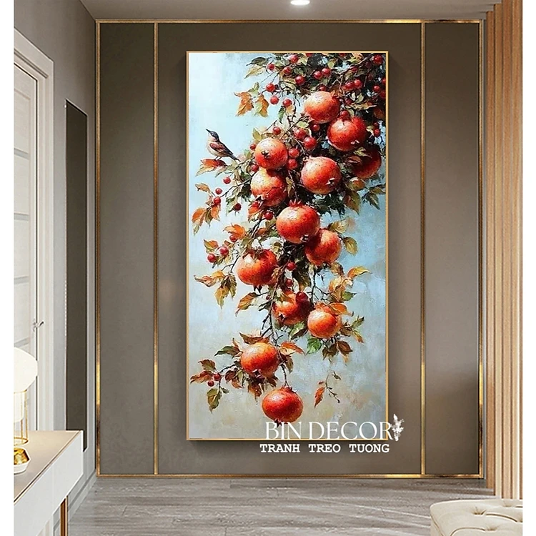 (HCM) Tranh treo tường tráng gương cành lựu may mắn 2 trang trí phòng khách,nhà hàng, khách sạn