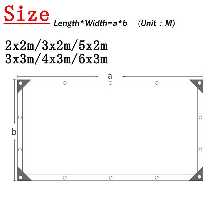Size:2x2m / 2x3m / 2x5m / 3x3m / 3x4m / 3x6m