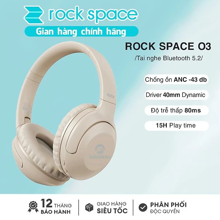 Headphone Tai nghe bluetooth chụp tai không dây chống ồn chủ động ANC ROCKSPACE O3 có mic nghe nhạc 15h hàng chính hãng