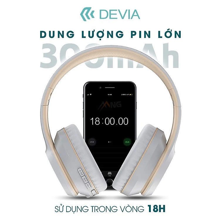 Headphone Tai Nghe Bluetooth Không dây chụp tai DEVIA Kington series có mic nghe nhạc liên tục 18H Hàng chính hãng