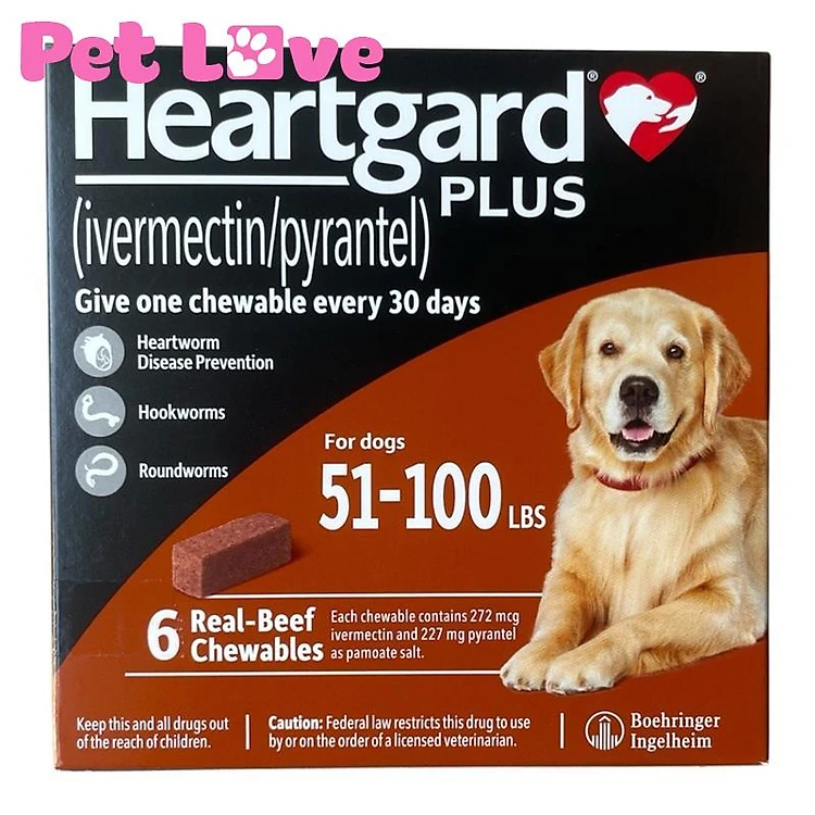 Heartgard phòng trị giun tim, giun đũa, giun móc (chó 22,5 - 45kg, hộp 6 viên)