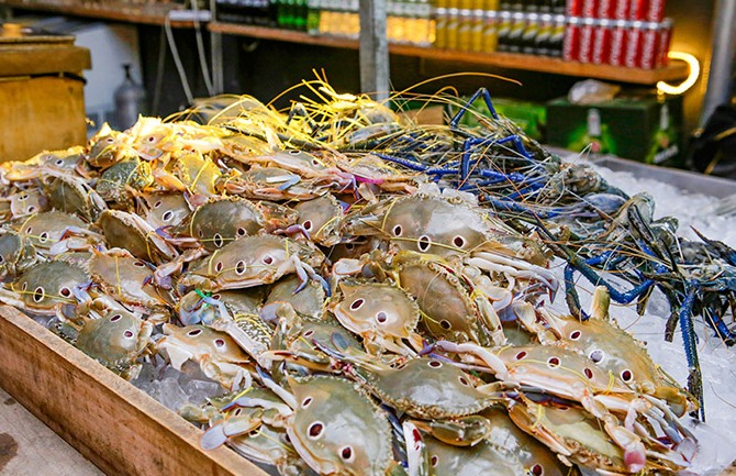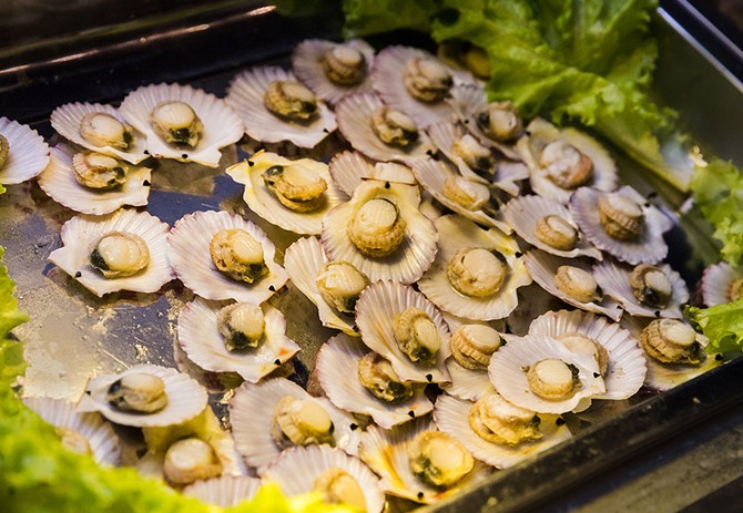 Hấp dẫn nhất và được mong chờ nhất trong bữa tiệc buffet lần này đó chính là những món ăn được làm từ hải sản. Nhà hàng Hell Bull BBQ N Beer lựa chọn nguồn hải sản tươi sống, chất lượng để làm nguyên liệu chế biến thành nhiều món ăn thơm ngon. Bước vào bữa tiệc, bạn sẽ bị kích thích bởi một danh sách dài các món hải sản như: Ghẹ/ Cua, Tôm càng, Hào sữa Pháp, Sò lông, Sò vẹo, Sò sữa, Sò lụa, Sò điệp, Mực sữa, Mực nang, Mực ống, Bạch tuột, Ốc vọp, Ốc bươu, Ốc lát,… được sơ chế, tẩm ướp nhiều công thức khác nhau từ đơn giản như hấp, nướng muối ớt, nướng sa tế đến mới mẻ hơn như xiên rau củ,… Mỗi loại hải sản đều có những cách kết hợp riêng với các loại gia vị, nguyên liệu khác nên đã tạo nên những sự lựa chọn đa dạng cho bạn.