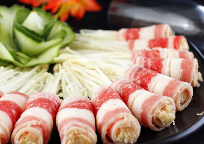 Sau hải sản thì phải nhắc đến thịt bò, thịt heo, vốn được thực khách yêu thích rất nhiều khi nghĩ đến món thịt nướng. Bò là một loại nguyên liệu khá quen thuộc, thế nhưng, với đôi tay biến tấu tài hoa của những người đầu bếp thì những món ăn sẽ có hương vị lạ miệng và vẫn giữ được hương vị đậm đà. Thực đơn nhiều các món bò như: bò cuộn phô mai, bò cuộn becon, bò xiên khoai tây, ba rọi bò, sườn bò, bò cuộn nấm kim châm, bò steak… và các món heo như: sườn non sốt, heo phi lê xiên khoai tây, ba rọi ướp ngũ vị, heo cuộn nấm kim châm,…