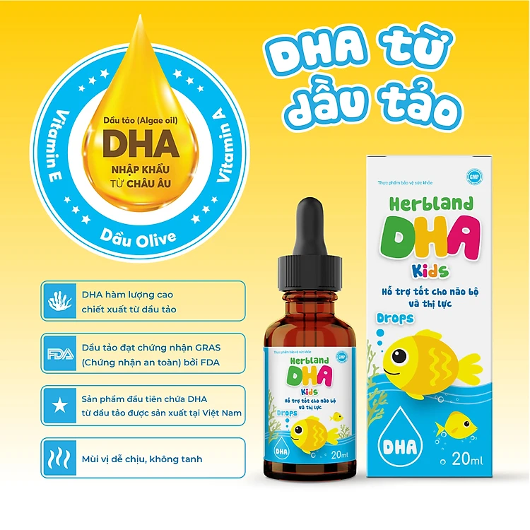 Herbland DHA Kids hỗ trợ tốt cho sự phát triển trí não và thị lực hộp 1 lọ x 20ml