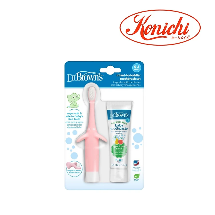 + Kem đánh răng Dr.Brown's nuốt được, nhưng ba mẹ nên tập cho bé thói quen nhổ bọt kem đánh răng ra