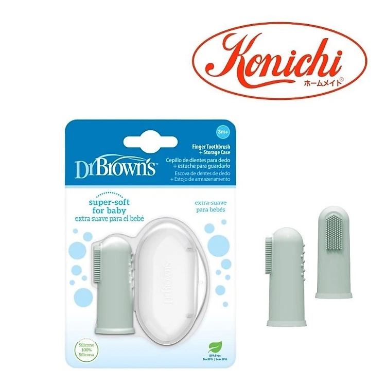 [ HG126-INTL ] Bàn chải răng ngón tay Dr.Brown's / rơ lưỡi hình ngón tay màu xanh lá nhạt - có hộp đựng