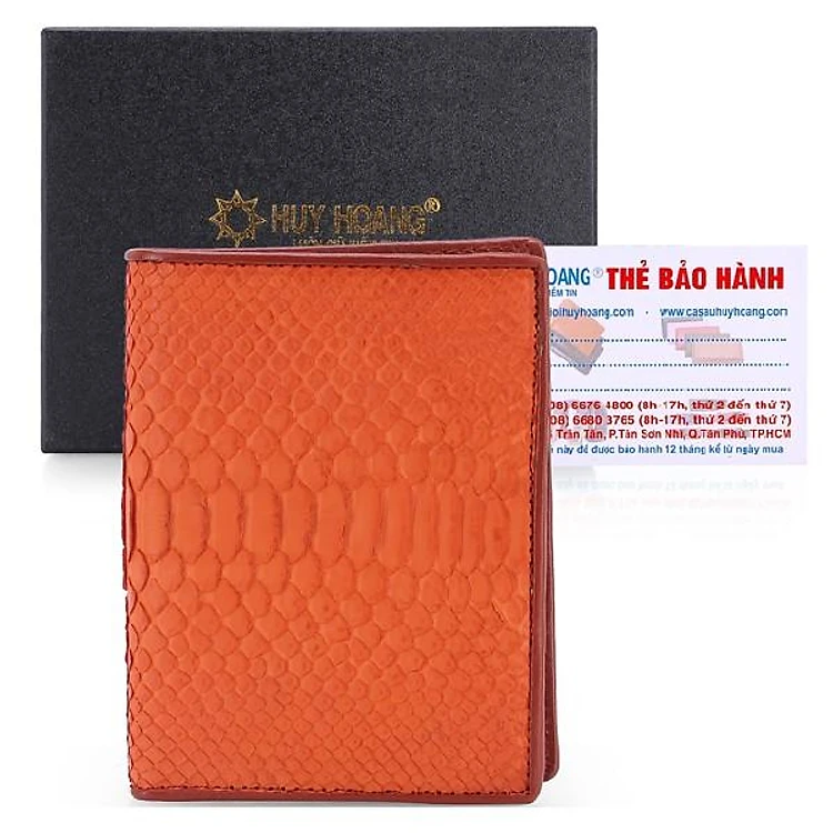 Bóp nam Huy Hoàng da trăn kiểu đứng màu cam HT2318