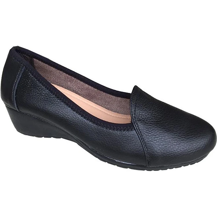 [HÌNH ẢNH THẬT] Giày đế xuồng nữ Trường Hải 3cm trơn đen da bò cao cấp mềm mại không bong tróc đế cao chống mòn không trơn DX0845