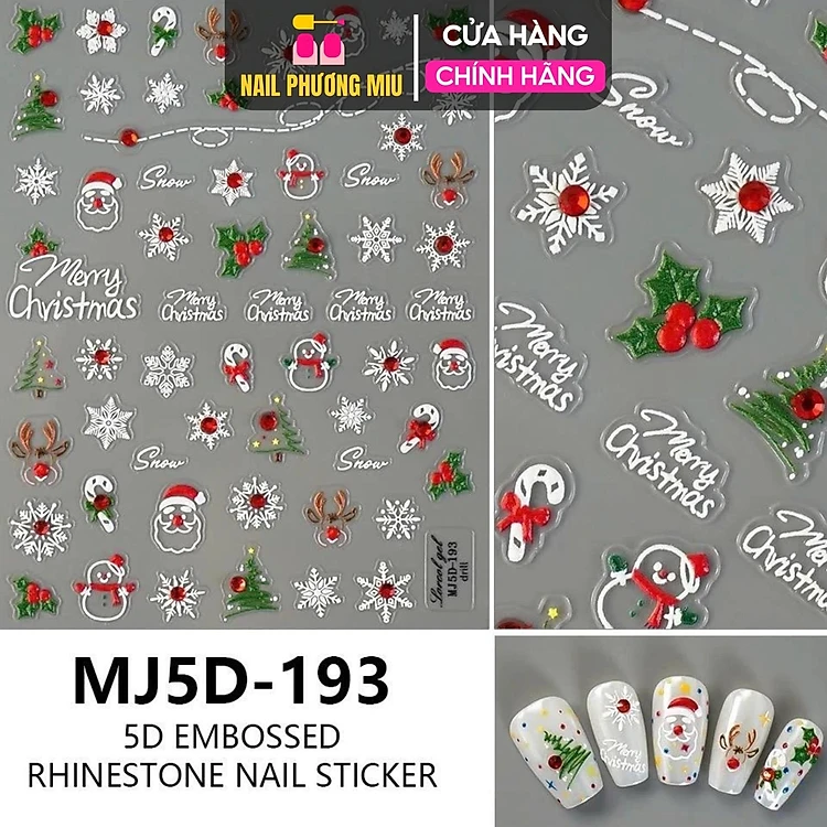 Hình Dán Móng Sticker Ông Già Noel 5D Làm Nail Siêu Xinh, Miếng Dán Móng Hình Giáng Sinh, Bông Tuyết, Tuần Lộc