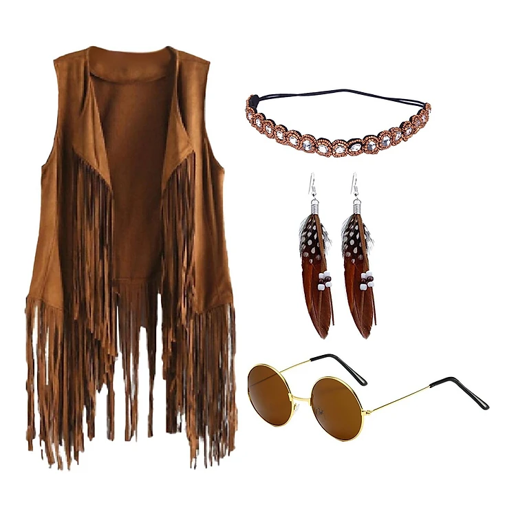 Hippie Costumes Clothes Halloween Earring Hippie Fringe Vest Disco Outfits