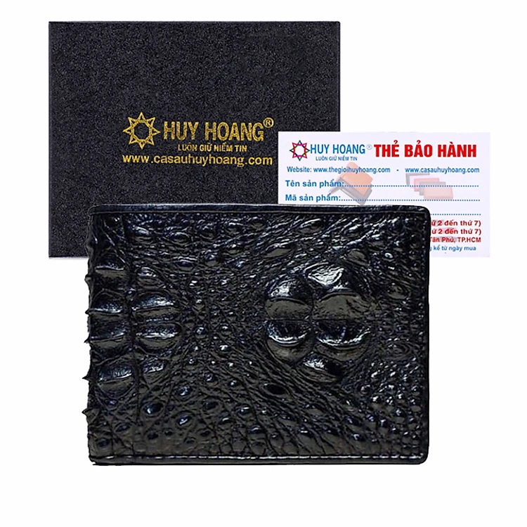 HJ2204 - Bóp nam Huy Hoàng da cá sấu nguyên con màu đen